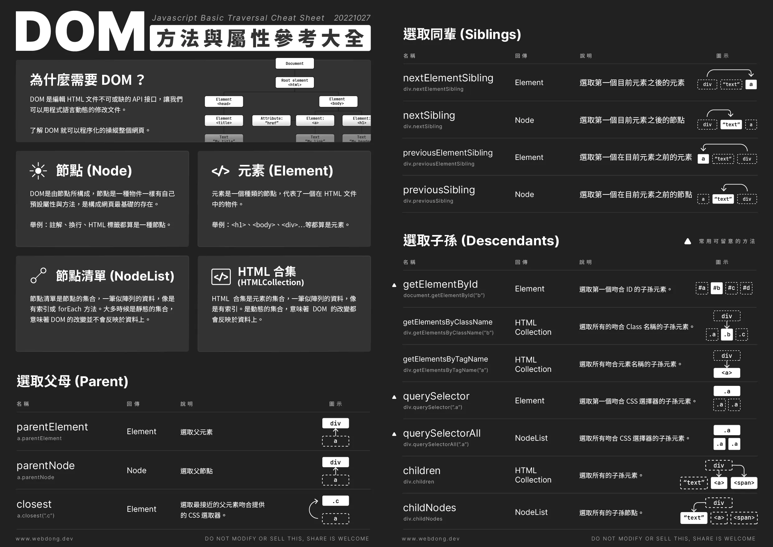 Next, we will divide the content into three main sections, learning step by step how to use JavaScript to manipulate web pages through the DOM API, learning to access, edit, and listen to the DOM.